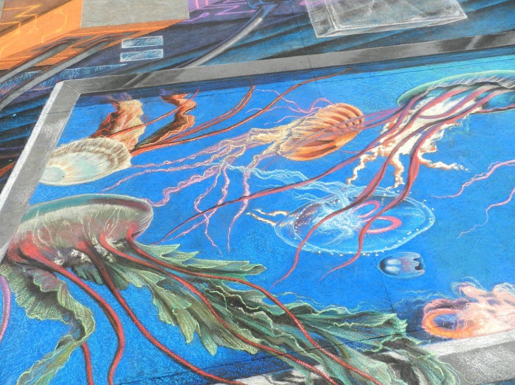 Of course I was honored to be one of the three, and was excited to be drawing with world phenom Julian Beever, topping the bill in Santiago, and street painting icon, Kurt Wenner, making magic in Concepcion. The whacky thing about this was that we did not know about the other artists until we arrived, so it was a surprise for us for sure. Talk about turning the pressure on! So we put our best foot forward and hoped that our painting would please the people of Antofagasta.